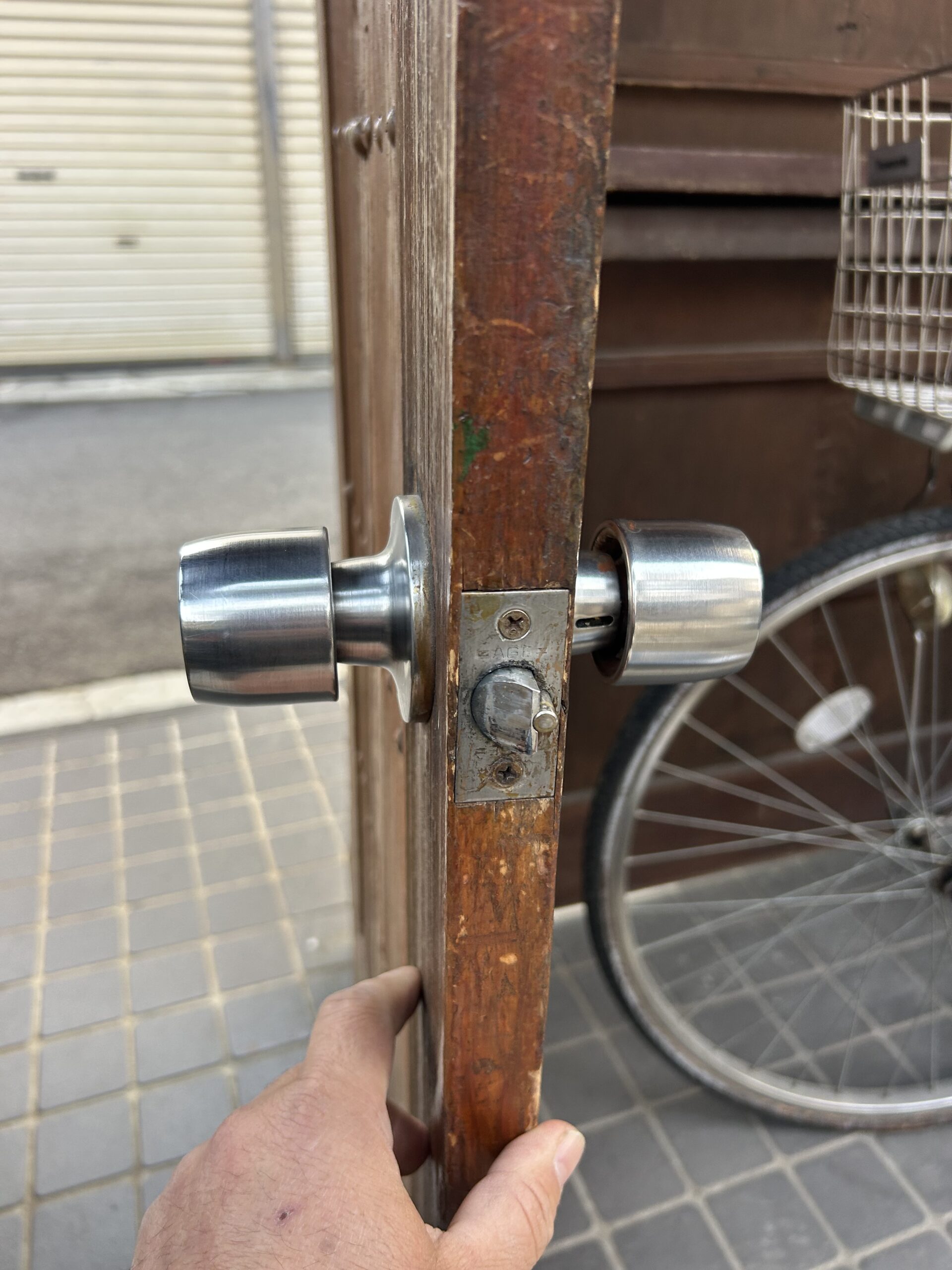 ドアノブが重いので新しく交換。